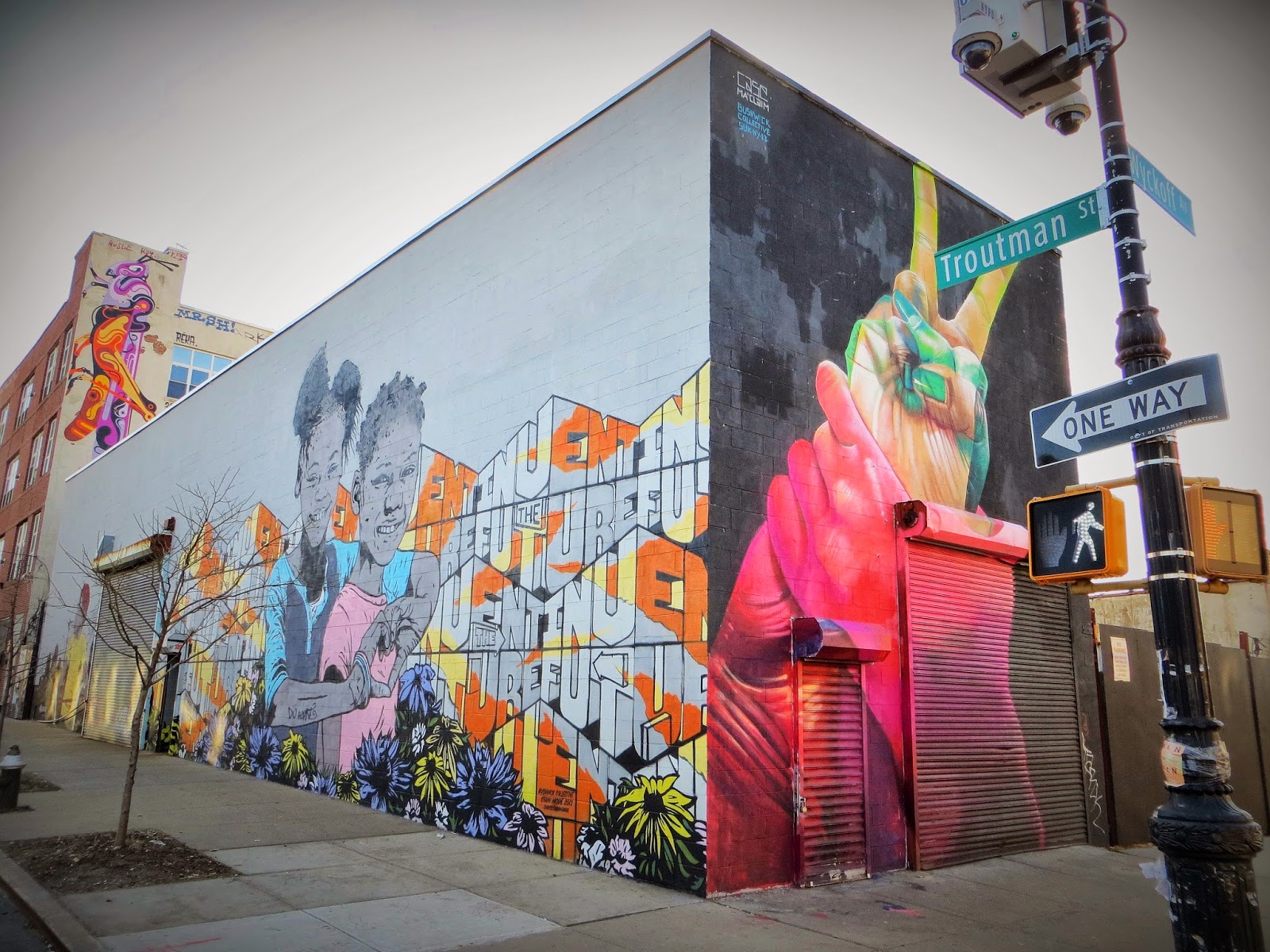 I repeat...the street art scene in Bushwick, Brooklyn is strong! As recently as two years ago, these buildings were not so sexy. Here's a then-n-now (courtesy of Google Maps Time Machine and NYC Corners). Note the sophisticated NYPD surveillance mechanism attached to the light post.CLICK TO ENLARGE