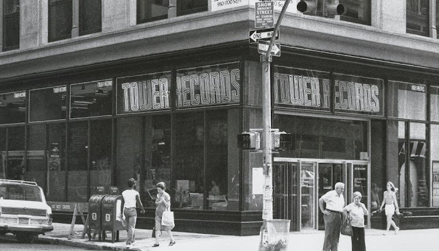 Who remembers the Tower Records in Greenwich Village? It was a fixture on East 4th Street and Lafayette from 1984 through 2006. Today, the space is occupied by MLB Fan Cave, I think. MTV's Kurt Loder said, "Keith Richards used to live upstairs, directly above Tower Records, so he was always outside there late at night walking his dog. And you'd walk up and talk to him, and you wouldn't be able to understand a word he was saying." [I wish I could remember where I found this great photo.] CLICK TO ENLARGE